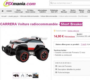 Offre jouet : 14.9 euros la voiture radiocommandée carrera short breaker (autour de 40 ailleurs)