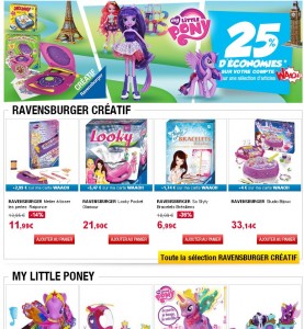 offre jouet : 25 pourcent sur la carte auchan pour jouets little pony , et jeux creatifs Ravensburger