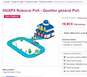 offre jouet premier age : le quartier général poli de Ouaps à moins de 20 euros ( entre 40 – 50 generalement )