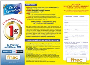 Offre ravensburger : deuxieme puzzle ou jeu à 1 euro … avec des jeux dans les soldes .. jusqu’au 28 février