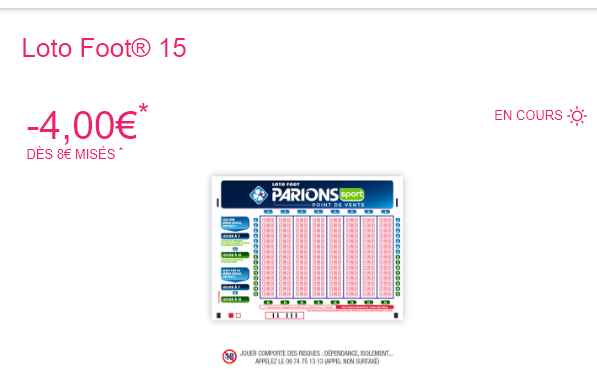 En effet , la Fdj propose sur simple demande un coupon de réduction à presenter dans un point jeux , qui permettra d’avoir une réduction immediate de 4€ pour une grille de lotofoot 15 de 8€ minimum ..