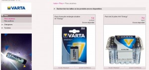 Avec tous les appareils electroniques que l’on a au quotidien (alarmes, jouets, jeux, reveil, appareil photo ..), on a toujours besoin de piles … Plutot que d’acheter celles ci au moment où il faut remplacer celles qui sont épuisées, il peut etre interessant d’anticiper et de faire un petit stock en profitant de la vente privée de la marque VARTA se deroulant sur le site venteprivee.com jusqu’au 6 juillet :