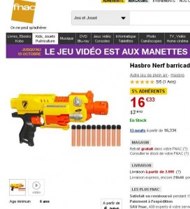 Cependant on peut en profiter pour acheter en meme temps le pisolet Nerf Nite Finder qui est lui aussi à un super prix de 8.33 euros ..