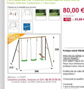 A noter que sur mistergooddeal on le trouve sous la marque Amca qui est l’autre marque des portiques Trigano ..