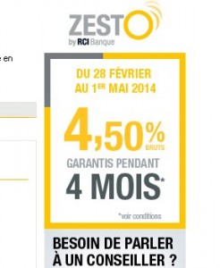 Vous avez une grosse somme d’argent à placer quelques mois ? Par exemple suite à la vente d’un bien immobilier ? L’offre de rci banque peut alors vous interesser : la filiale de renault propose un livret bancaire à 4.5 % brut (taux annuel ) durant 4 mois ..