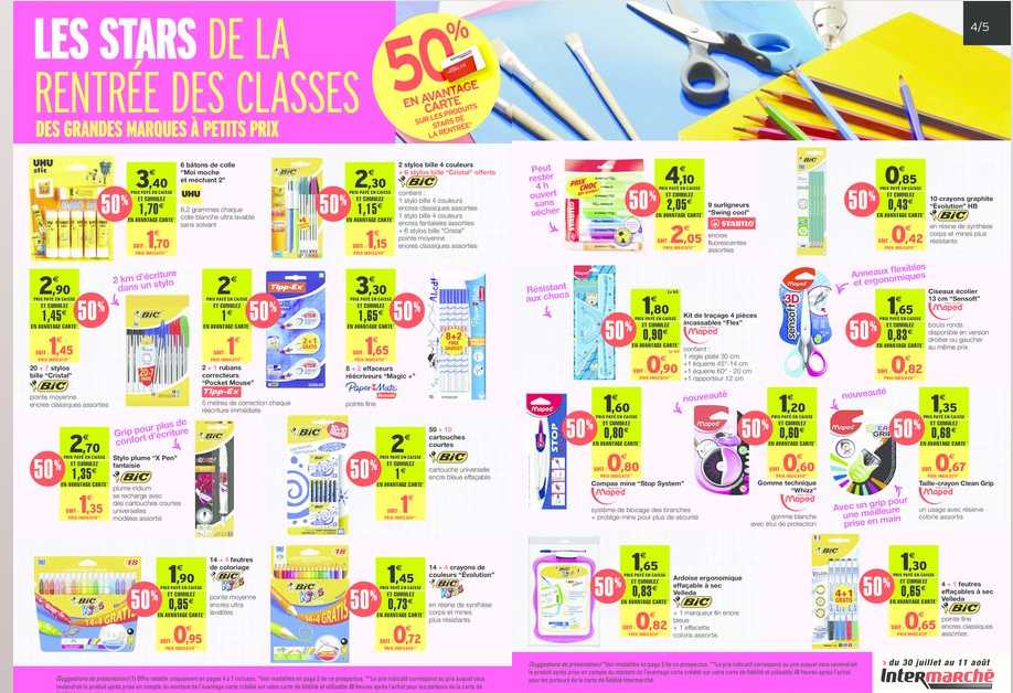 Rentrée scolaire : 50% sur les fournitures chez intermarché du 30 juillet au 11 aout
