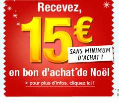 Faire vite : jusqu’au 30 novembre , sur le site rueducommerce , pour tout achat dans les rayon jouets, electromenager, maison, jardin , brico , mode , sport et culture, on recoit un bon d’achat de 15€ ..