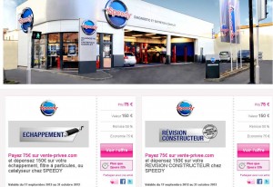 Sur venteprivee, est vendu pour 75 euros un bon d’une valeur de 150 utilisables pour une revision constructeur dans un centre auto speedy … A noter que si le prix de la revision est inferieur à 150 euros, il est possible d’acheter des articles completementaires ..