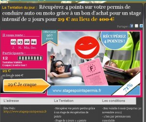 En effet le site vous vend pour 29 euros un bon d’achat d’une valeur de 100 euros valable justement sur le site http://www.stagespointspermis.fr .