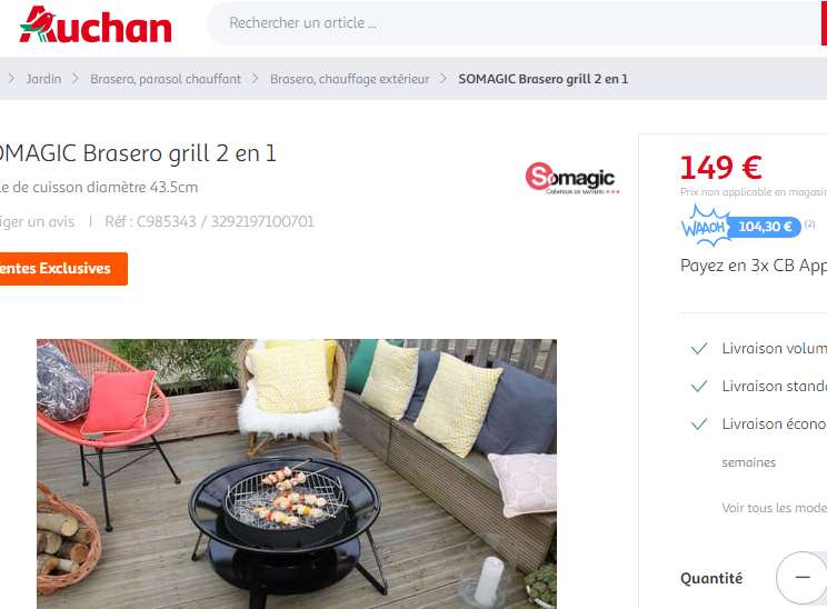 Sur le site Auchan, on peut voir une super affaire sur un Brasero de la marque SOMAGIC …