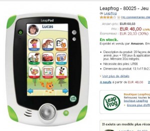 Bon prix sur amazon sur les tablettes éducatives Leappad Explorer de la marque Leapfrog qui font l’objet de 30% de remise immédiate … Elles sont ainsi vendues 48 euros port inclu au lieu de pres de 70 .. Et effectivement 70 euros est le prix normal auquels on les voit ailleurs (chez darty par exemple) ..