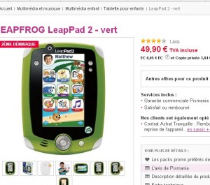 Voir la leappad 2 sur pixmania