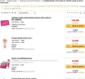 Offre jouet qui peut etre interessante : sur le site de la fnac pour 40 euros d’achat en jouets barbie , on peut acheter à 49 euros la tablette tactile lexibook Barbie …