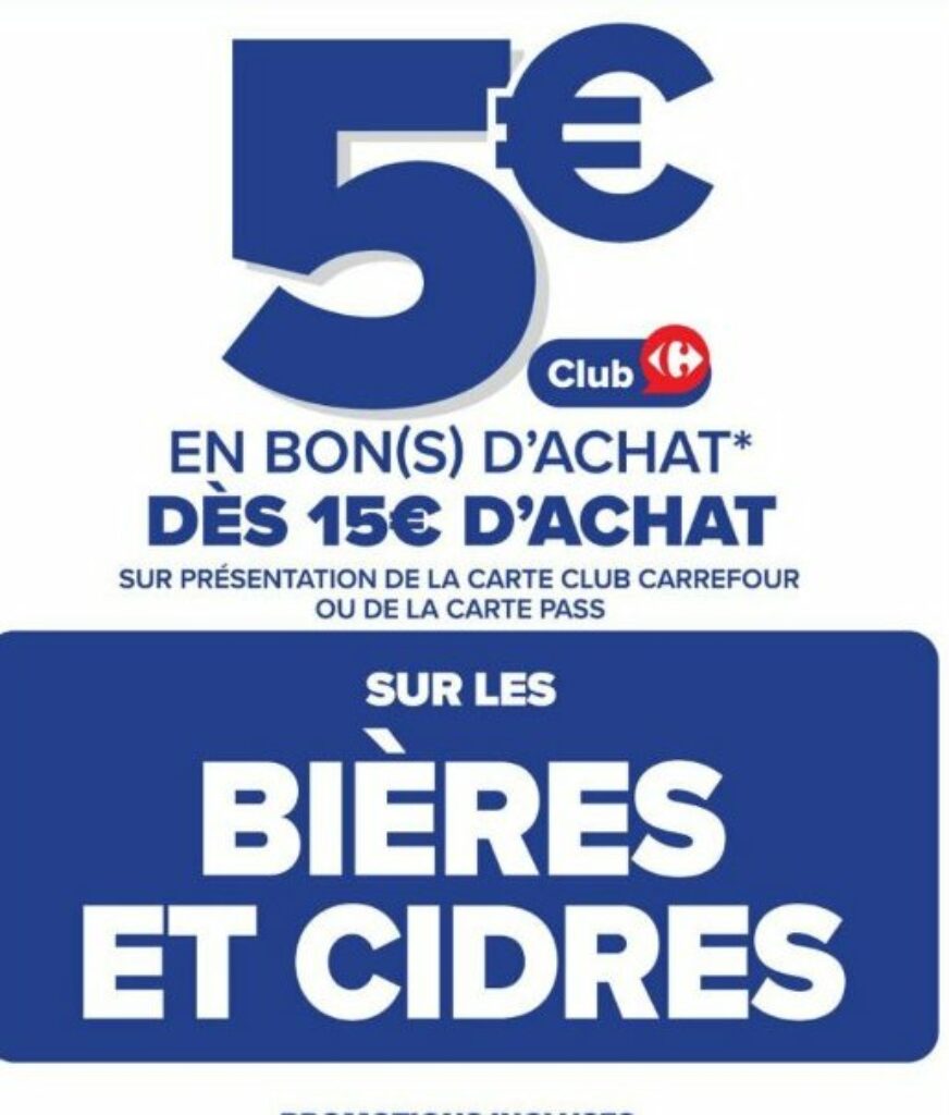 En magasin et sur le drive carrefour , par tranche de 15€ d’achats en biere on récupere un bon d’achat de 5€