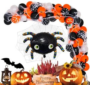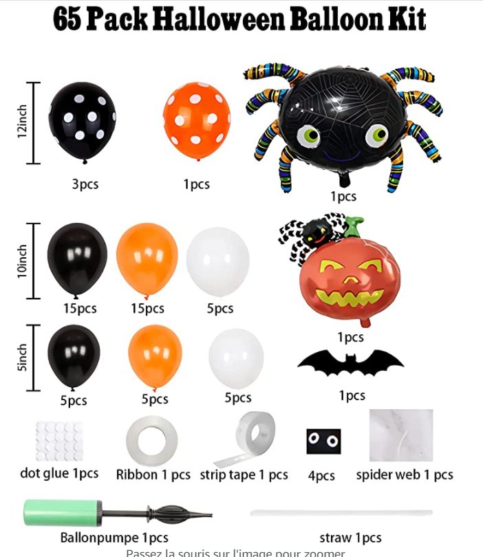 Bientôt Halloween , voici une bonne affaire pour décorer l’entrée de sa maison (ou une porte interieure ) avec une arche en ballon avec aussi araignés, citrouille , chauve souris