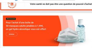 Un prime avec cette boite de 50 masques on aura gratuitement offert un gel hydroalcoolique