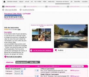 Actuellement les previsions météo sur meteo12jours predisent une temperature entre 19 – 21 °C sur la cote d’azur pour la deuxieme semaine des vacances de la toussaint (du 26 octobre au 2 novembre 2013 ) .. et donc si vous désirez profiter de cette temperature bien agréable, bonne affaire sur lastminute pour une location au Pradet à coté de Toulon .. 149 euros + 5 euros de frais soit donc 154 euros en tout le logement pour 5 ,7 ou 8 personnes dans un village vacances …