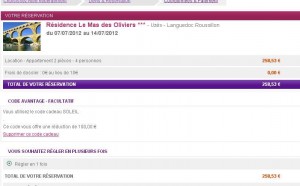 Mais en utilisant le code promo « SOLEIL » on gagne 100 euros et le prix passe donc à 258.53 euros ..