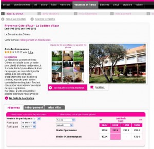 Envie d’aller au Sud en amoureux voir le soleil et la mer de la cote d’azur ? Bonne affaire sur lastminute concernant un séjour dans une résidence à la Cadiere D’azur .. En effet le studio 2 personnes est à 299 euros la semaine pour une arrivée les 4 ,11 et 18 aout ..