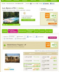 366 euros la semaine du 21 au 28 juillet pour un mobil home dans un camping 3 étoiles à la baule