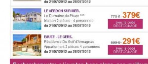 Il faudra ensuite dans la procedure de reservation saisir le code promo « DESTOCKAGE » pour avoir 15% de remise supplémentaire et donc avoir un tarif final de 379 euros ..