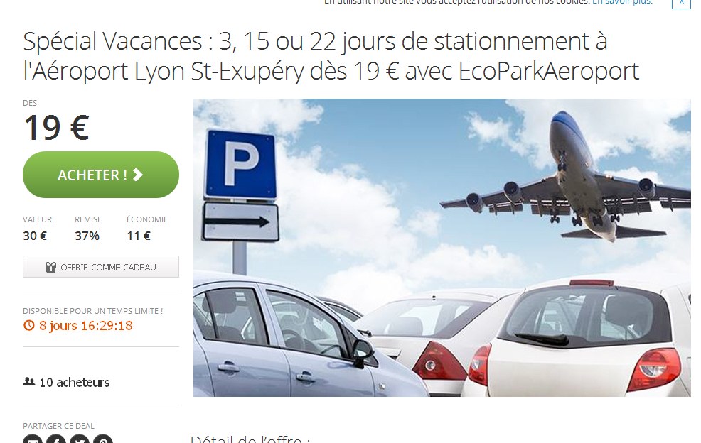 autre offre pour un parking à coté de l’aeroport (mais attention fermé en juillet aout ) mais valable donc de septembre à decembre 2015 : voir ecopark lyon