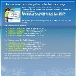 Air Caraibes est une compagnie aerienne deservant les antilles depuis Paris Orly . Jusqu’au 15 mai, Air Caraibes propose une offre tres interessante avec le 2eme billet d’avion offert