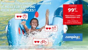 Avec des séjours en camping à partir de 99€ la semaine sur le site Auchan Voyage ! Ce prix de moins de 100€ ne se retrouve cependant que sur quelques campings, pour une semaine precise , les autres semaines qui suivent ou precedent etant un peu plus cheres ( de 10à 30€ ) ..