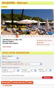 Faire tres tres vite : à l’occasion du lancement des resas de premieres minutes chez marmara , il y a des supers affaires pour les vacances 2012 : ainsi le séjour aux baleares en tout inclu est à 299 euros au depart de nombreuses villes (lyon ,paris, brest , nantes )..