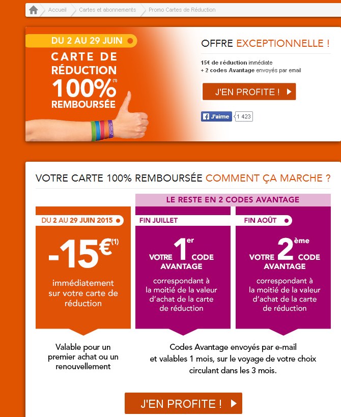 Bon plan sncf : carte de réduction 100% remboursée jusqu’au 29 juin 2015