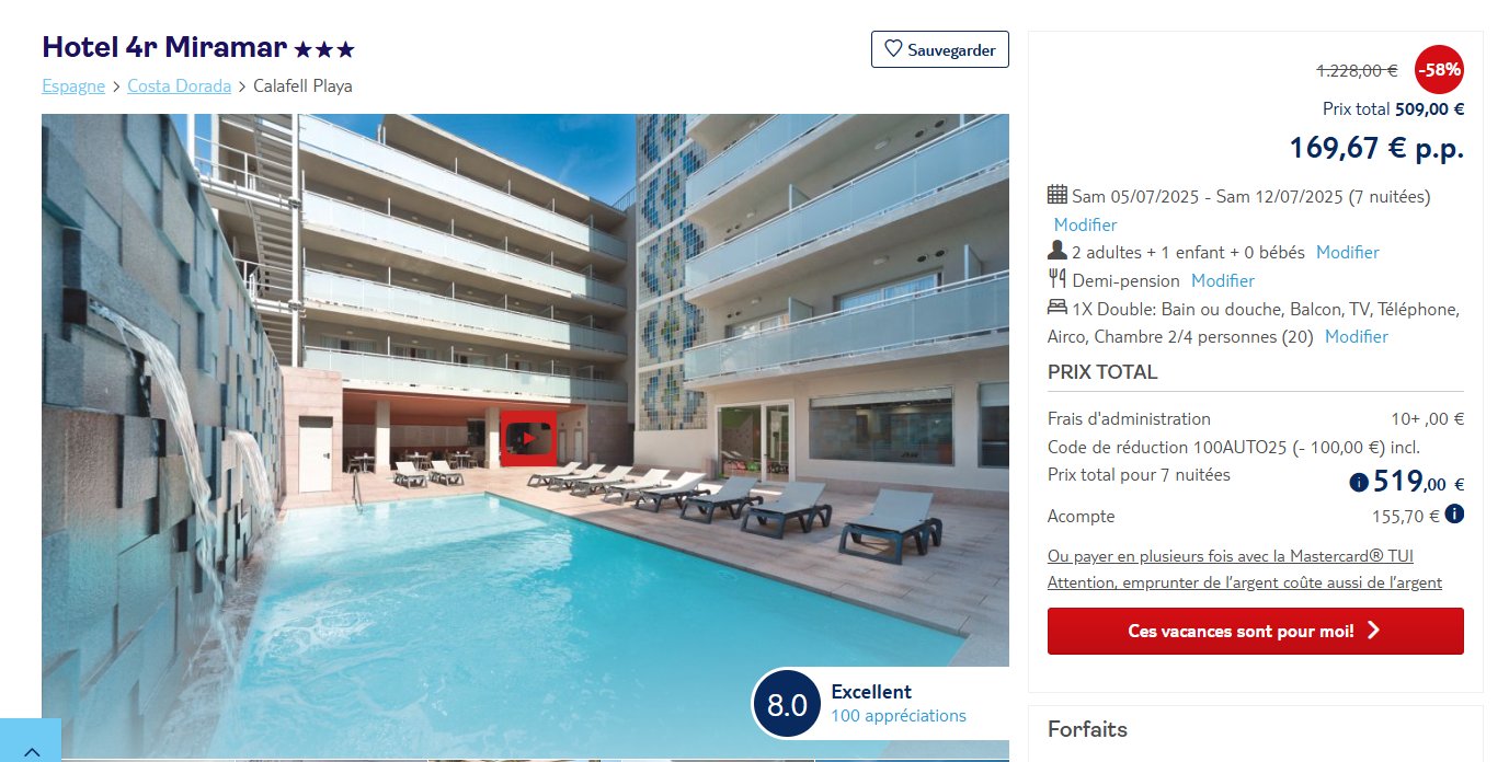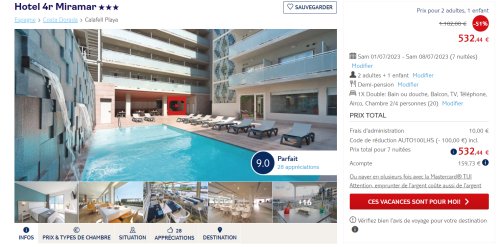 Sur Tui.be , le site Belge , on peut avoir que la semaine en juillet , pour 2 adultes et 1 enfant de moins de 14 ans varie entre 535€ et 811€ gràce à une offre promotionnelle (et la gratuité pour le premier enfant de moins de 14 ans ) .. et avec le code promo « 120BLACK25 » qui donne 120€ de réduction en plus …