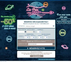 Attention, il faut faire vite pour réserver car il n’y a que quelques chambres dans chaque hotels proposées aux tarifs « CRAZY PRICE » …