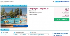 Mega affaire sur le site Leclerc Voyages , pour une semaine de vacances en location au bord de la mer pour une arrivée le 6 avril : 59€ seulement dans un camping au Sainte Marie de la Mer … Camping le Lamparo 3 etoiles ..