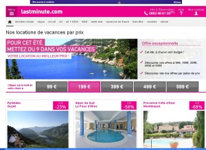 A la recherche d’une location de vacances pas chère pour cet été ? Sur lastminute, il y a des locations à 99 ,199, 399 et 499 euros … Les locations à moins de 100 euros sont dans des résidences à la montagne, à 199 euros on commence à trouver des locations à la campagne .. et meme une location sur l’ile d’oleron (voir cette offre ile d’oleron ) … Ou encore dans le languedoc … Certaines à 199 euros sont dans des campings ou résidence avec des animations et clubs enfants …