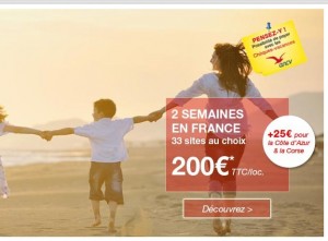 On a en effet 2 semaines de vacances à la campagne, mer ou océan pour 200 euros dans de nombreuses residences et à 225 euros pour des residences sur la cote d »azur …