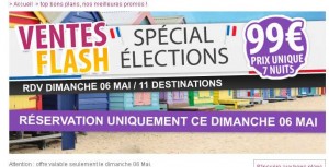 Le 6 mai uniquement, sur le site de location MadameVacance, il va y avoir des locations de vacances à 99 euros la semaine concernant 11 résidences à la mer , montagne , campagne ..