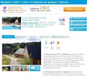 Envie d’aller en vacances dans une des plus belle région de France ? Sur le site mmv , il y a une promo de dernière minute concernant une residence club à Egletons en Correze : moins de 400 euros la semaine pour la maisonnette pour 4 ou pour 6 personnes pour une arrivée le 27 juillet ..