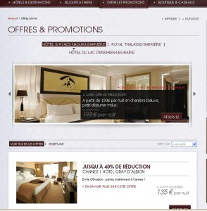 Ainsi la nuit au Normandy Barriere à Deauville est proposée à partir de 159 € , à 129€ à l’Hotel du Golf Barriere , à partir de 135€ au gray d’albion de Cannes , à 150€ à l’hotel Barriere de Lille ..