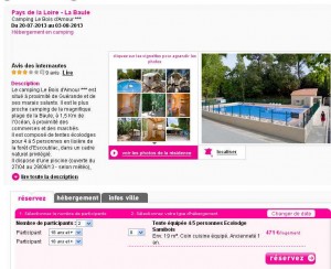 Vous êtes jeunes et avez un petits budgets vacances ? Bon prix encore une fois sur lastminute pour un séjour de deux semaines sur la cote atlantique à la Baule .. 471 euros seulement les 2 semaines dans un camping 3* « Camping Le Bois d’Amour » pour une arrivée le 20 juillet .. Hebergement en tente par contre sans sanitaire – il faut donc utiliser les sanitaires communs .