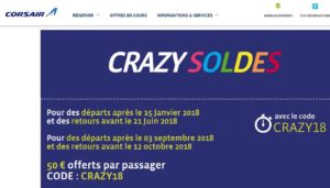 Bon plan chez Corsair à l’occasion des soldes … Avec un code promo qui donne 50€ de réduction par passager