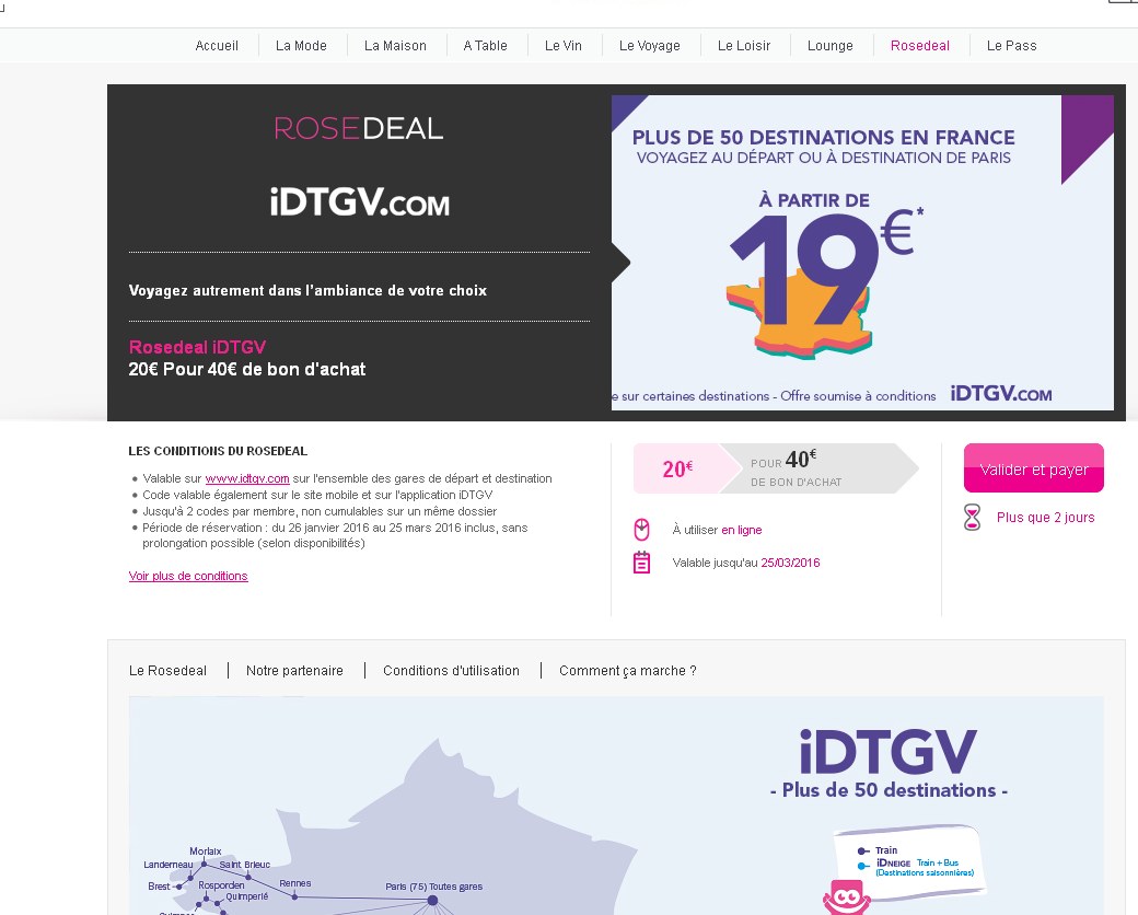 Sur venteprive, on peut acheter pour 20 euros un bon d’achat de 40 euros valable donc pour une réservation sur le site idtgv ..
