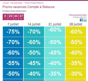 Sur le site Madame Vacance se déroule une promotion compte à rebour à compter du 2 juillet avec de nombreuses locations remisées pour les arrivées du 7 ,14,21 et 28 juillet ..