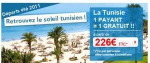 Thomas Cook : Tunisie 1 payant , 1 gratuit même en été