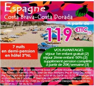 Et meme durant les vacances en juillet notamment les prix sont très interessant , ainsi par exemple la semaine du 9 juillet est à 289 euros dans un hotel à lloret del mar ..