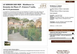En effet la semaine de location au Verdon sur Mer dans une maisonnette pour 4 personnes dans une résidence 3* avec piscine , terrain de sport ne coute que 119 euros .. (le tarif de 119 euros est valable tout le mois d’avril ainsi que la première semaine de mai ce qui correspond à toutes les zones de vacances de Paques ) . Maisonnette avec terrasse , mobilier de jardin