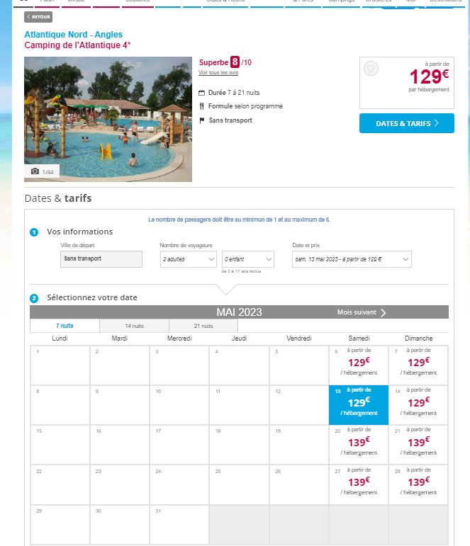 Leclerc Voyage propose de temps en temps une offre mobil home à 149€ avec Leclerc Voyages, mais si on farfouille sur ce meme site , on peut voir par exemple un séjour en mobil home au bord de l’Atlantique pour encore moins cher actuellement … Entre 129 et 139€ la semaine suivant les dates sur tout le mois de mai et la premiere moitié du mois de juin .. Elle concerne donc la semaine du Pont de l’Ascension et celui de la Pentecote