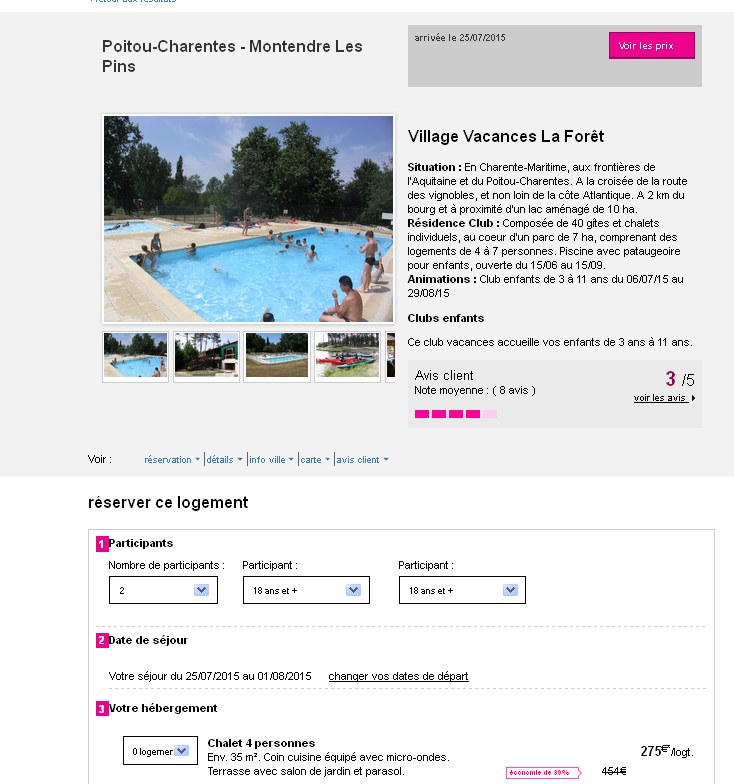 Il ne faudra peut etre pas etre trop exigeant au niveau des logements, cependant à 275 euros la semaine avec piscine et club enfants et pas loin de l’ocean, on doit difficilement trouver moins cher ..