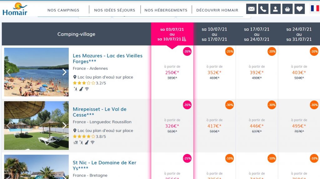 Bon plan pour reserver ses vacances d’été en camping que cela soit à la campagne, la mer ou l’ocean , avec une vente flash pour les french days sur le site HOMAIR !
