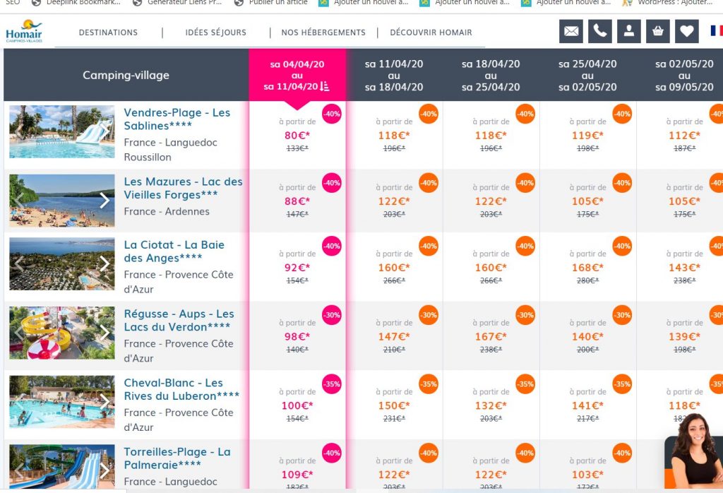 On peut ainsi voir des séjours à partir de 80€ la semaine …