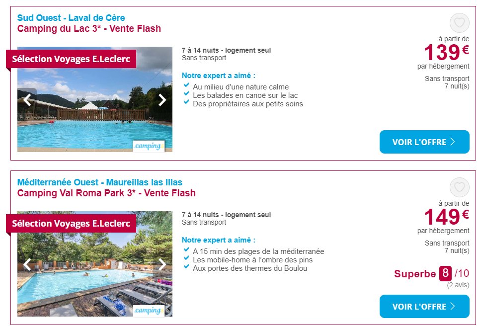 A noter qu’on peut aussi trouver des semaines encore moins cheres , dans la page des offres campings sur LECLERC VOYAGE : cliquez ici